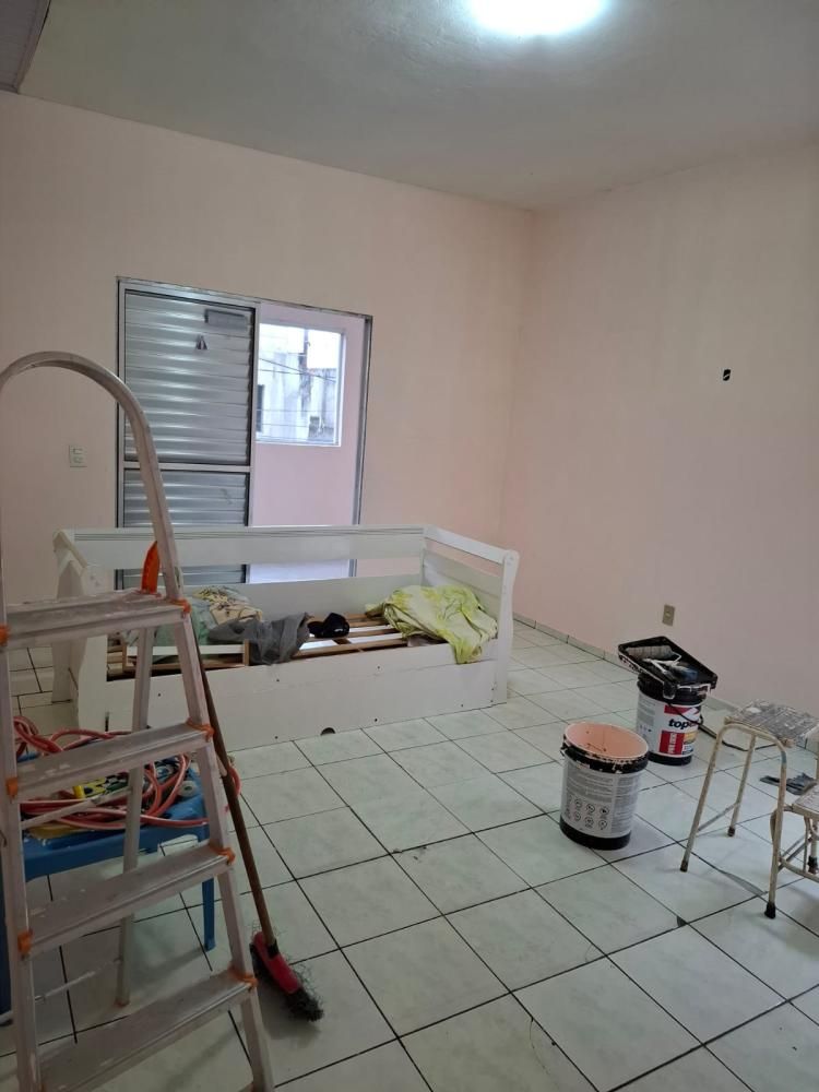 Casa com 1 dormitório, sala, cozinha, banheiro, área de serviço e sem vaga de garagem.
